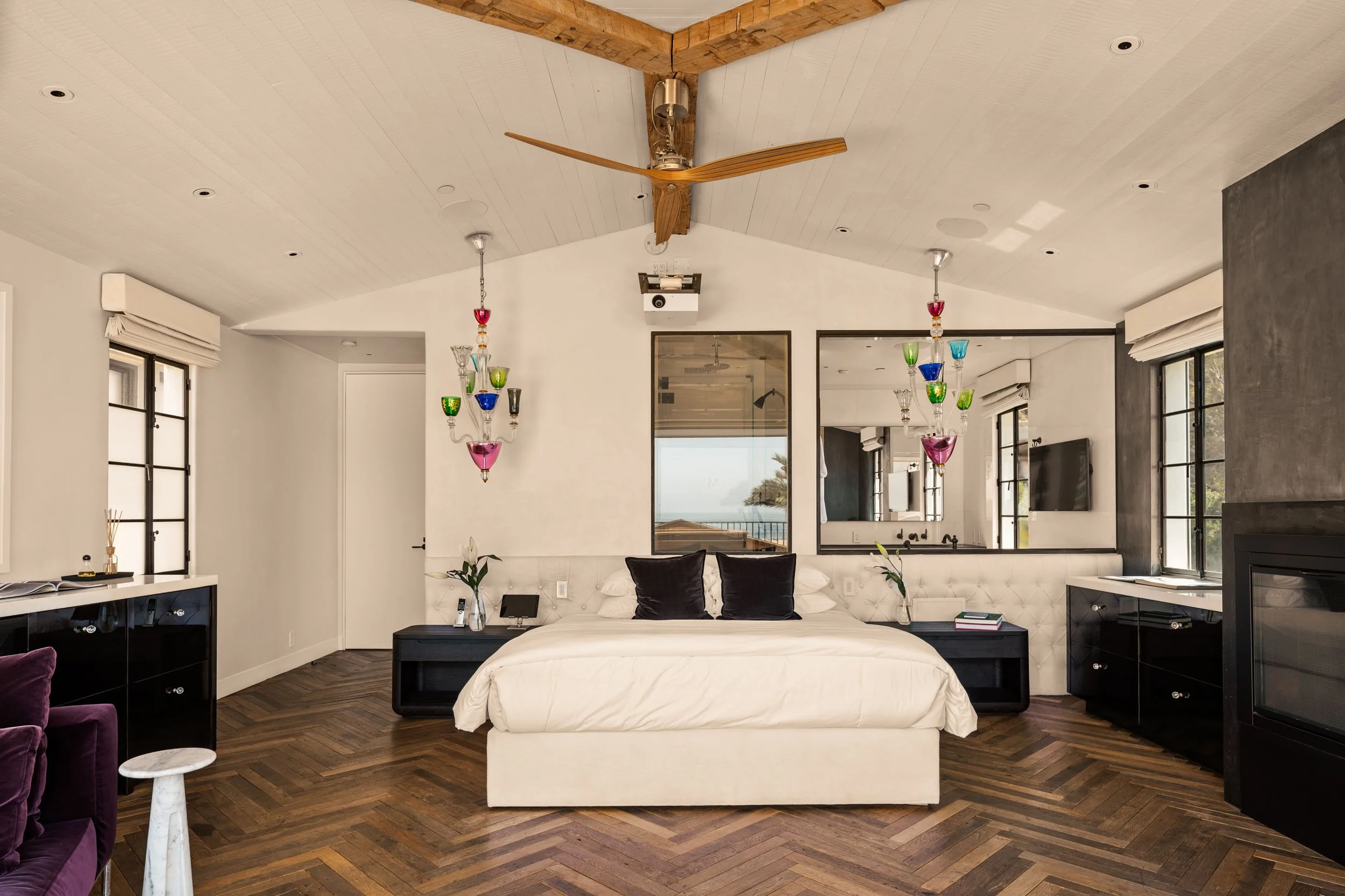 Along Santa Monica’s famed Gold Coast, this 6,600+ sq ft oceanfront estate was transformed into a private sanctuary of coastal glamour. Expansive living spaces flow to sun-drenched terraces framing endless Pacific views, while reclaimed oak floors, bespoke millwork, and a luminous palette echo the surrounding seascape. Layered natural textures, couture furnishings, and spa-level finishes create an atmosphere of understated opulence—crafted for refined entertaining and elevated everyday living.